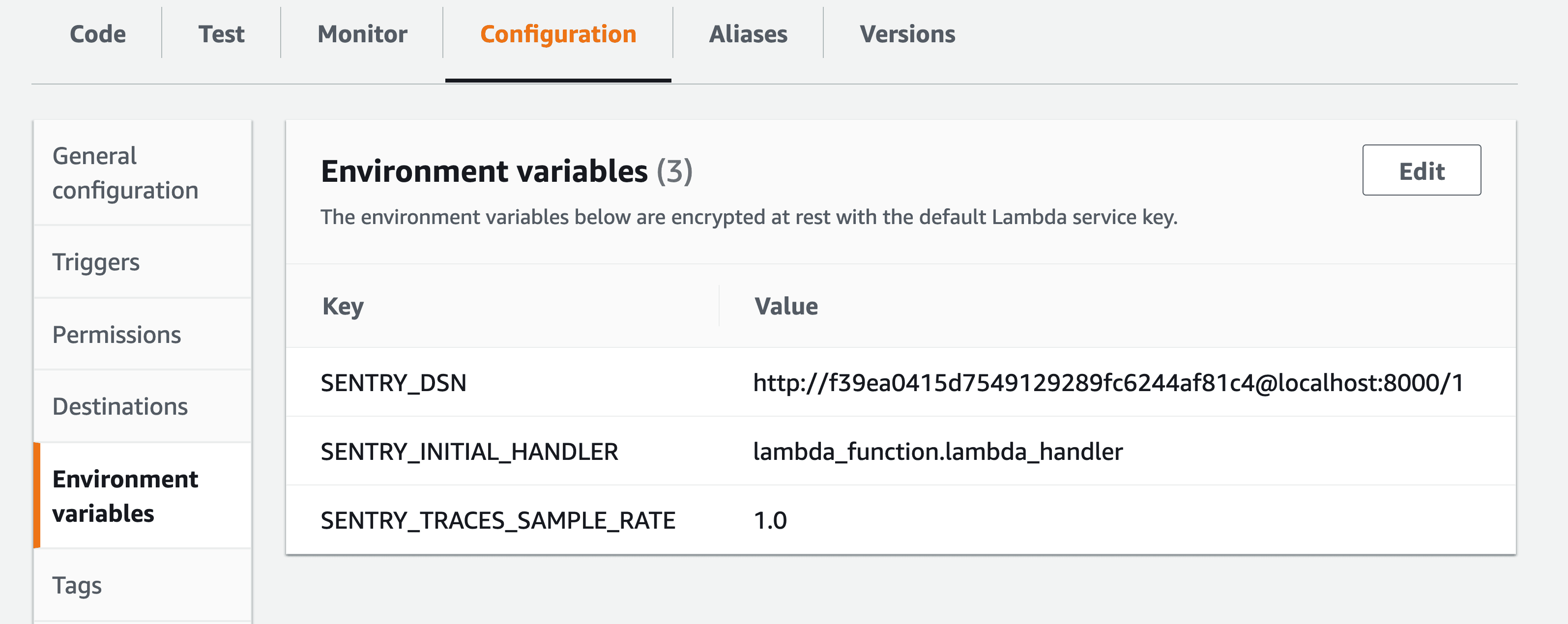 • The layer for Sentry is added to your Lambdas. Any existing layers are honored and the Sentry layer is appended to the end.